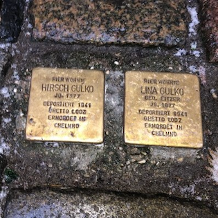 The Stolpersteine (Stumbling Blocks) are 10x10x10 cm in size. The artist Gunter Demnig launched the Stumbling Blocks project in 1992 by laying the first stone. It was intended to cherish the memory of all the victims of the Nazi regime: Jews, Sinti and Roma, homosexuals, those politically persecuted, Jehovah’s Witnesses and euthanasia victims. The names on the Stumbling Blocks were meant to return personality and dignity to the people who had been reduced to numbers. A conscious pause at the Block with the inscription is a “stumbling with the head and the heart”. Today, the Stumbling Blocks are held in high esteem. 75 000 have already been laid in Germany and in 25 other European countries. They form the world’s largest decentralised memorial, increasingly becoming a community issue in cities and towns. Every year on the 9th of November, the date of the Kristallnacht of 1938, people gather to clean and polish the metal plaques so that the names of the victims of National Socialism remain legible. It is a reminder in the present times, when new signs of violence, contempt for humanity and anti-Semitism are reappearing.