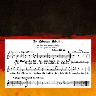 Written as early as around 1800, this song had a special impact at the time of the first democratic revolution on German soil, the "March Revolution" of 1848/49. It was a time of democratic awakening as well as the overthrow of existing orders. The common striving and rebellion for freedom, equality and fraternity of the liberal and young population in defiance of all violence and repression were reflected in the lines of this simple song. Between 1810 and 1820 a melody was written in Bern, which was printed together with the text in Swiss hymnals. Finally, in 1842, the German poets Hoffmann von Fallersleben and Ernst Richter published Die Gedanken sind frei in the "Silesian Folk Songs". The song enabled citizens to sing against political and personal oppression and to give voice to their longing for independence and self-determination. The Ulm resistance fighter Sophie Scholl is said to have played the song at the prison wall for her father when he was imprisoned for statements critical of Hitler. To this day, artists continue to reinterpret the song of longed-for freedom, for example Nena or Leonhard Cohen.