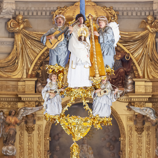 This musical play develops on two planes: horizontal or terrestrial, formed by the andador (ramp) and the cadafal (stage); and vertical, aerial or celestial, with medieval manual pieces of stage machinery that move down to the singers: magrana (pomegranate); araceli; and coronación. It has a medieval monodic part as well as Renaissance and Baroque polyphonic pieces sung in Old Valencian only by men and boys, since liturgy forbade women’s participation.